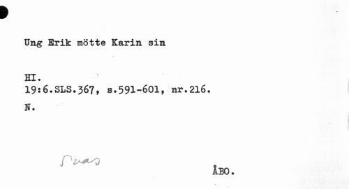 //// ¥ //// Ung Erik mötte Karin sin Hl. //// 19:6.SLS.367, s.591-601, nr.216. //// N. //// fi^O //// km. ////