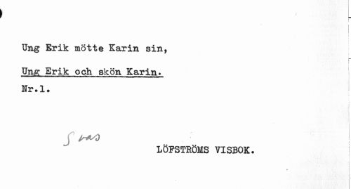 //// Ung Erik mötte Karin sin, //// r //// i //// Ung Erik och skön Karin• Nr.l. //// c //// l * //// ! I //// j ! //// LÖPSTRÖMS VISBOK. | ////