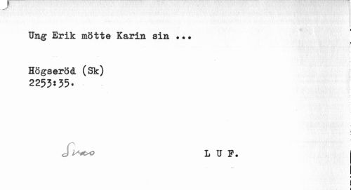 //// __I //// Ung Erik mött© Karin sin # • • //// S //// ; //// Högseröd (Sk) //// 2253:35- //// t //// L U F. //// ¦ ¦ ¦ //// I //// i ////