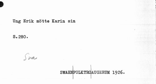 //// ¥ //// Ung Erik mötte Karin sin //// % //// S.280. //// ! i v i //// i //// i //// j WL* I //// SWAHNFOLKTRÖAUGERUM 1926. //// I I //// ! ////