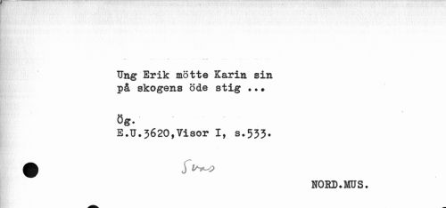 //// Ung Erik mötte Karin sin på skogens öde stig ..* //// Ög. //// E.U.3620,Visor I, s.533. ^ NORD.MUS. ////