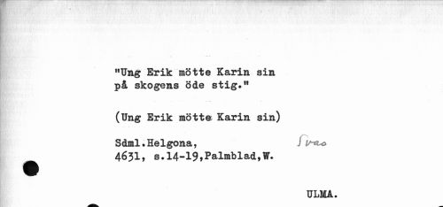 //// "Ung Erik mötte Karin sin på skogens öde stig»11 //// (Ung Erik mötte Karin sin) Sdml.Helgona, J U-*to //// 4631, s*14-19*Palmblad,W. //// ULMA. ////