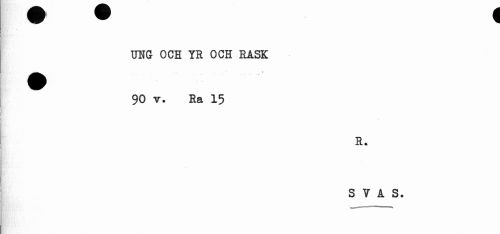 //// W w I //// UNG OCH YR OCH RASK 90 v. Ra 15 //// R+ //// S V A S. //// nu» --- 1 i ////