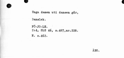 //// Unga damen uti dansen går, //// Danslek. //// FÖ-JO-LE. //// 2:4, SLS 46, s.487,nr.228. N. s.462. //// ÅBO. ////