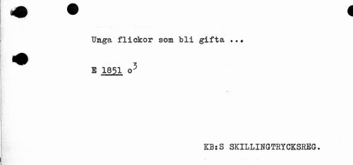 //// Unga flickor som bli gifta ... //// ^ E 1851 o5 //// 0 //// KB:S SKILLINGTRYCKSREG. ////