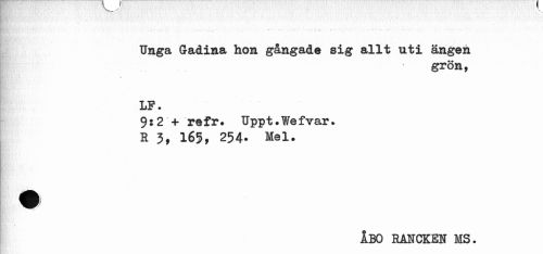 //// , • . I . . • • >. •• //// Unga Gadina hon gångade sig allt uti ängen //// grön, //// LP- //// 9: 2 4- refr# Uppt.Wefvar. R 3$ 165, 254- Mel» //// ÅBO RMCKEN MS. ////