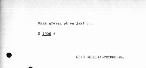 //// 9 //// Unga greven på en jakt ... E 1906 f //// I //// W KBsS SKILLINGTRYCKSREG. ////