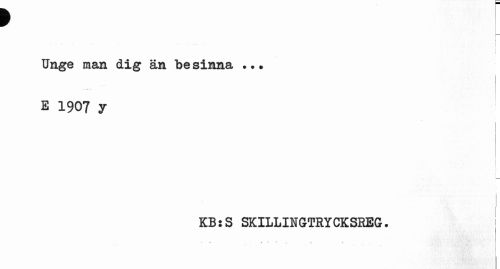 //// 9 //// r~ //// i //// ... i ¦ " ¦ ... //// Unge man dig än besinna ... E 1907 y //// ! 1 //// KB:S SKILLINGTRYCKSREG. //// « .. 1 r ////
