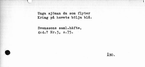 //// % //// Unga sjöman du som flyter Kring på havets "bölja blå. //// Svenssons saml#häfte, //// 4:4.? Nr.3, s.75. //// ® ÅBO. ////