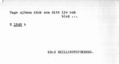 //// Unge sjöman käck som ditt liv och //// blod ••? //// R 1848 b //// \ //// KB:S SKILLINGTRYCKSREG. ////