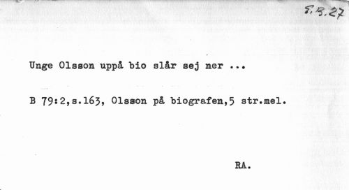 //// Unge Olsson uppå bio slår sej ner ... //// : .: a: //// B 79:2,3.163, Olsson på biografen,5 str.mel. //// EA. ////