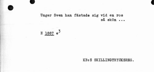 //// C //// I; W //// Unger Sven han fastade sig vid en ros //// så skön ?.• //// E 1887 e5 //// 81 //// KB:S SKILLINGTRYCKSREG. ////