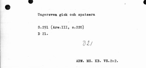 //// Ungersven gick och spatsera //// S.291 (Arw.III, s.220) D 21. //// di/ //// ARW. MS. KB. VS.2:2. ////