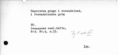 //// ' //// * //// V . . ' //// Ungersven gingo i rosendelund, i rosendelunden grön //// BO. //// Svenssons saml.häfte, //// 8s4. Nr.4,8.33. ^ F £7 //// ^ ÅBO. ////
