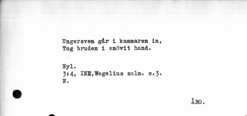 //// Ungersven går i kammaren in, Tog "bruden i snövit hand. //// Hyl. //// 3:4, I1E,Wege1ius salm. s.3. //// H. //// ÅBO. ////