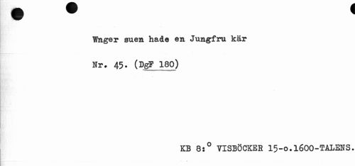 //// Wnger suen hade en Jungfru kär Nr. 45. (DgP 180) //// KB 8s° VISBÖCKEB 15-O.1600-TALENS. ////