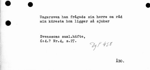 //// Ungersven han frågade sin herre om råd ^^ min käresta hon ligger så sjuker //// Svenssons saml»häfte, //// 6:4.? Nr.4, s.27* _ y „ //// ^jrlrsf //// ÅBO. ////