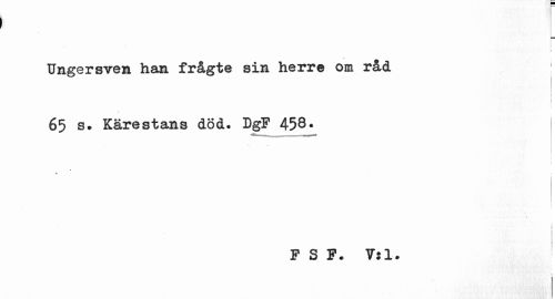 //// Ungersven han frågte sin herre om råd 65 s. Kärestans död. DgF 458. //// I //// _ //// FSP. T*l. //// i ////