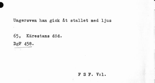 //// f //// Ungersven han gick åt stallet med ljus //// : //// 65» Kärestans död. //// DgF 458. //// : //// . r. < //// F S F. Til. I //// i » ////