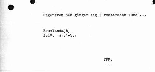 //// •I //// I //// Ungersven han gångar sig i rosenrödan lund .?• //// » //// Romelanda(B) //// 1610, s.54-55» //// VFF. ////