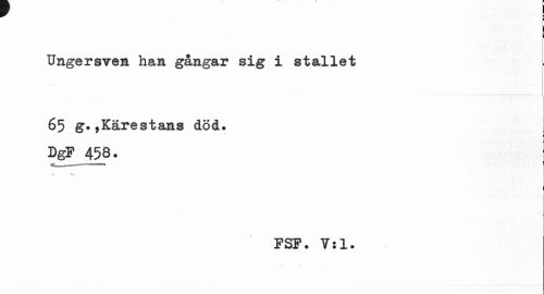 //// I //// Ungersven han gångar sig i stallet 65 g»,Kärestans död. //// DgP 458. //// 1 //// PSF. 7:1. ////