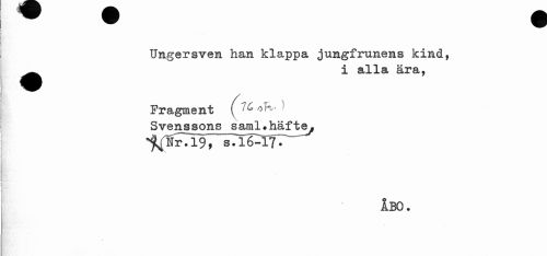 //// Ungersven han klappa jungfrunens kind, __i alla 3/2? Qr * //// Fragment ^ ¦ //// Svenssons saml.häfte, //// . 19, ™s7TPl7. //// ÅBO. ////