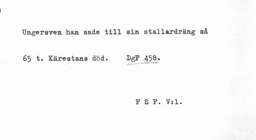 //// Ungersven han sade till sin stallardräng så 65 t. Kärestans död. DgF 458. //// F S F. V: 1. ////