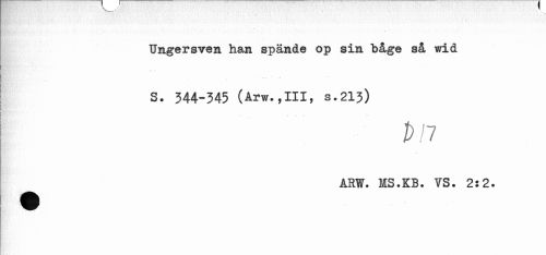 //// Ungersven han spände op sin båge så wid //// S. 344-345 (Arw.,111, s.213) //// DP //// ARW. MS.KB. VS. 2:2. ////