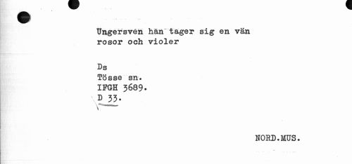 //// Ungersven han* tager sig en vän rosor och violer //// Ds //// Tösse sn. IPGH 3689- //// \D 33- //// NORD.MUS. ////