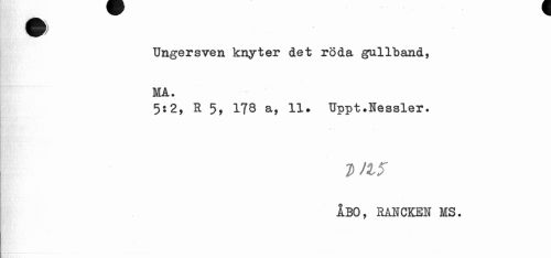 //// •i) i //// 7 //// Ungersven knyter det röda gullband, MA. //// 5:2, R 5, 178 a, 11. Uppt.Hessler. //// T)/IS //// ÅBO, RANCKEN MS. ////
