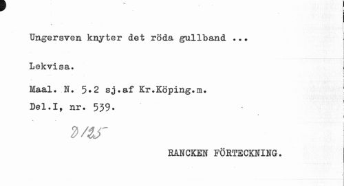 //// « //// Ungersven knyter det röda gullband ... //// ... //// Lekvisa. //// k //// . « • i Maal. N. 5.2 sj.af Kr.Köping.m. ! //// Del.I, nr. 539• //// » //// 2 ny i //// RANCKEN FÖRTECKNING. //// i ////