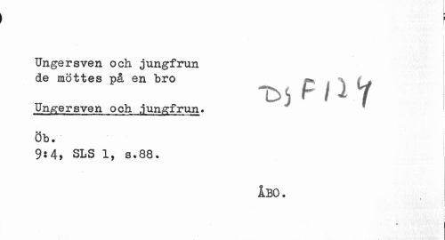 //// I //// i i. //// Ungersven och jungfrun //// de möttes på en bro < * //// TM r 11 v //// Ungersven och .jungfrun. Öb. //// 9«4» SLS 1, s.88. //// ÅBO. //// I //// l //// J //// t //// % ////