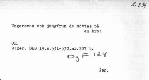 //// Ungersven och jungfrun de möttes på //// en bro: //// OR. //// 9!2+r. SLS 19,s.531-532,nr.207 b. //// O^ f1 1 * 1 //// ÅBO. ////
