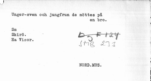 //// Unger-sven och jungfrun de möttes på //// en bro. //// \ //// Sm | //// Skirö. - ... //// Ha Visor. . . J 1 ! //// SHg är\i | //// ¦ . f //// NORD.MUS. i //// I. ¦ //// I //// i I ////