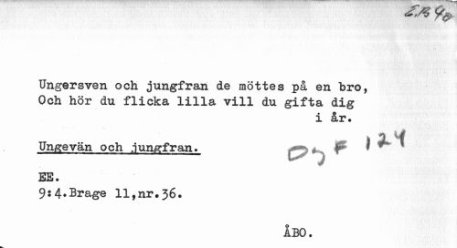 //// Ungersven och jungfran de möttes på en bro, Och hör du flicka lilla vill du gifta dig //// i år. //// SS. //// 9$4.Brage 11,nr.36. //// ABO. ////