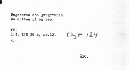 //// Ungersven och jungfrunen De möttes på en bro. //// •i» //// FB. //// 1:4, INB 28 b, nr. 12. p / £ / //// N. //// ÅBO. ////