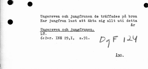//// Ungersven och jungfrunen. de träffades på bron A Har jungfrun lust att äkta sig allt uti detta //// W år //// Ungersven och jungfrunen. LJ. //// 6:2+r. IHE 29,1, s*91. fö^j P* | JiS^ //// ÅBO. ////
