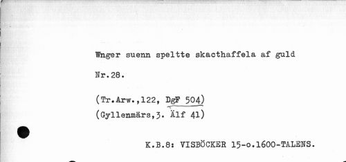 //// Whger suenn speltte skacthaffela af guld Nr.28. //// (Tr.Arw.,122, DgF 504) (Gryllenmärs,3. Älf 41) //// K.B.8: VISBÖCKER 15-o.1600-TALENS. //// * . 1 ////