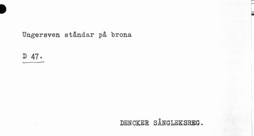 //// Ungersven ståndar på brona //// • • [ //// . \ //// i //// D 47- //// i //// ! //// : | //// i //// f //// l //// > //// i //// t t //// \ C //// I f //// DENCKER SÅNGLEKSREG. ////