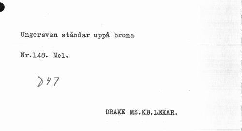 //// f //// I //// I //// Ungersven ståndar uppå brona //// Nr.148. Mel. ! //// [ //// •j //// b //// I //// DRAKE MS.KB.LEKAR. ////