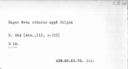 //// ^ /fds //// ! //// Unger Sven ståndar uppå tiljan //// S. 264 (Arw* j X X X ^ S # 215) //// D 18. //// ARW.MS.KB.VS. 2:2. //// i //// L-. ? ////