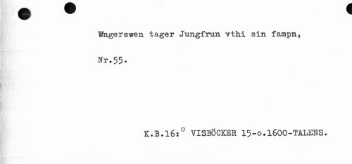 //// Wngerswen tager Jungfrun vthi sin fampn, //// Nr.55- //// K.B.16:° VISBÖCKER 15-0.I6OO-TALENS. ////