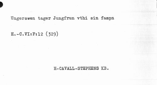 //// t //// I //// TJngerswen tager Jungfrun vthi sin fampn H.-C.VIsFs12 (329) //// H-CåVALL-STEPHENS KB. ////
