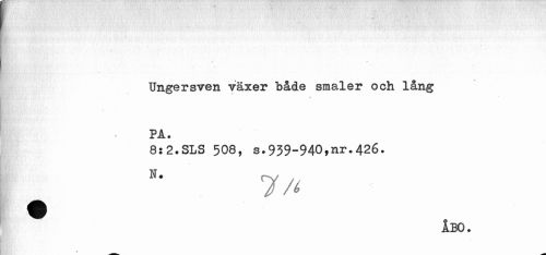 //// Ungersven växer både småler och lång PA. //// 8:2.SLS 508, s.939-940,nr.426. //// 7 A //// ÅBO. //// ¥ ////