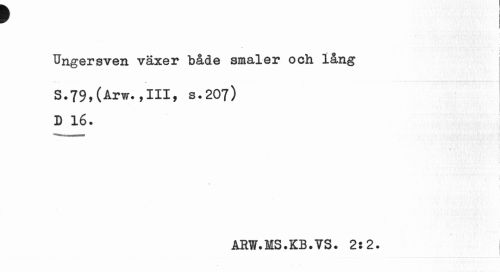 //// f //// i //// Ungersven växer både småler och lång //// S.79,(Arw.,111, s.207) D 16. //// i //// « //// ÅRW.MS.KB.VS. 2:2. ////