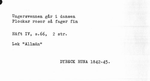 //// Ungersvennen går i dansen Plockar rosor så fager fin //// Häft IV, s.66, 2 str. Lek "Allmän" //// DYBECK RUIA 1842-45- ////