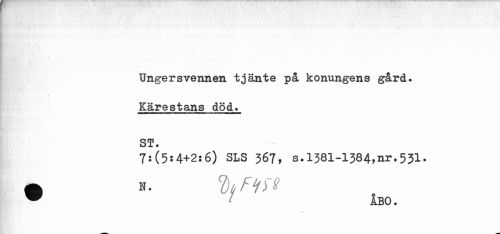 //// Ungersvennen tjänte på konungens gård. //// WBfflfc'} ¦ i //// Kärestans död. ST. //// 7:(5*4+2:6) SLS 367, s.1381-1384,nr.531. //// • H. % Fl W //// ÅBO. ////