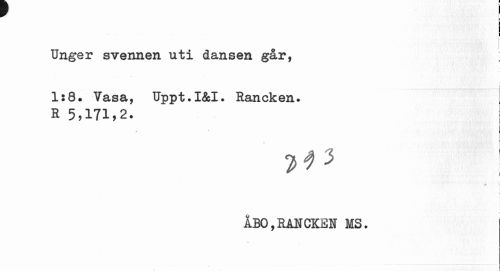 //// I //// Unger svennen uti dansen går, //// i //// 1:8. Vasa, Uppt.I&I. Rancken. R 5,171,2. //// ? f //// ÅBO,RANCKEN MS. ////