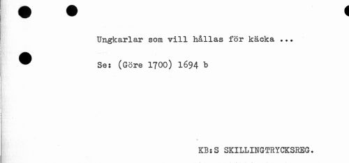 //// Ungkarlar som vill hållas för käcka ... //// ® Ses (Göre 1700) 1694 h //// KB:S SKILLINGTRYCKSREG. ////