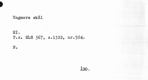 //// f //// Ungmors skål Hl. //// T.s. SLS 367, s.1322, nr.504. N. //// ÅBO. ////